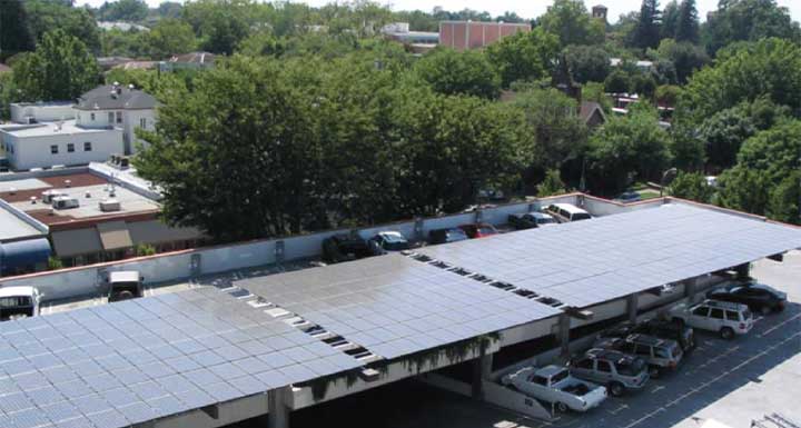 After learning about a rebate available from Pacific Gas and Electric Company (PG&E; San Francisco), the city installed a 91 kilowatt pilot solar project on a downtown parking structure in July 2004. The solar parking array is made of 480 PV panels, which deliver electricity directly into the City's electrical grid.