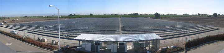 In 2005, the City installed the solar electric system at Chico's Water Pollution Control Plant. It is a ground mounted photovoltaic (PV) tracking system, which maximizes the sun's available energy by capturing up to 25% more daylight than fixed arrays, as the tracker follows the sun from early morning to late afternoon. The system uses high efficiency PV modules to generate maximum output per square foot. The modules are composed of solar cells made of solid-state semiconductors to convert sunlight into direct current (DC) electricity. The DC output from the PV modules is then converted to alternating current (AC) electricity by inverters for use by the city of Chico. [Read more]