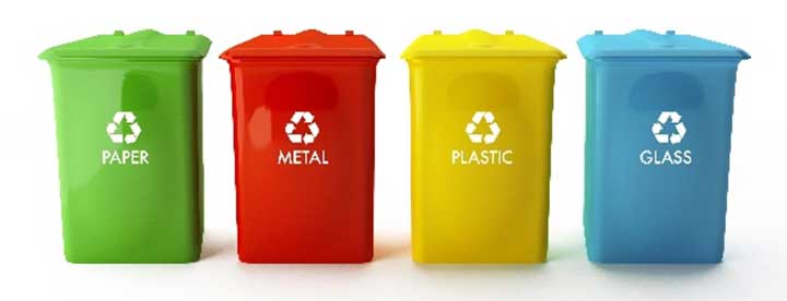 Recycle cardboard, glass, metals, mixed paper, office paper, plastic, and wood.